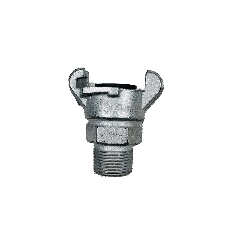 This 2-leg Chicago coupling with male NPT thread is used for quick and secure connection of air or water hoses. The universal 2-lug design allows easy connection with other Chicago-style couplings.
