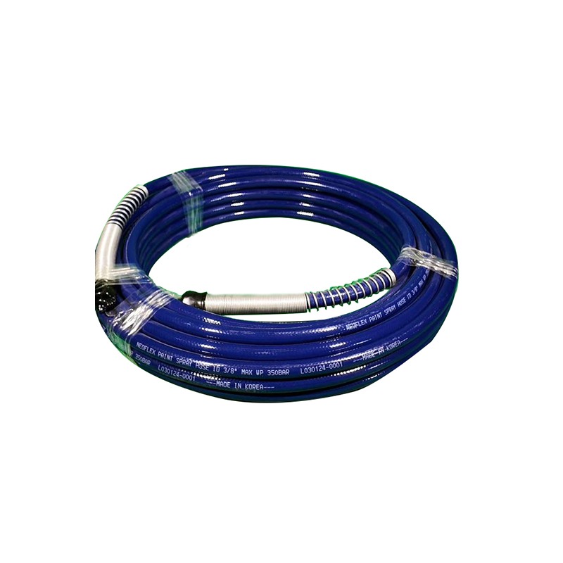 This 1/2" high-pressure paint hose from Neoflex (Korea) is designed for professional airless spray applications. With a working pressure of 350 Bar (5,000 PSI) and a 15-meter length, it delivers reliable performance for heavy-duty coatings, making it ideal for use with airless paint pumps, sprayers, and industrial spray systems. The hose is supplied complete with pre-crimped fittings, ensuring secure, leak-free connections and compatibility with most standard spray guns and pumps.