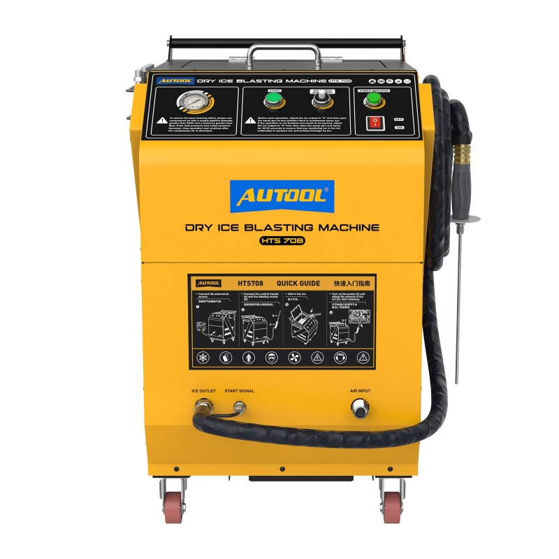 AUTOOL HTS708 Dry Ice Cleaning Machine Blaster adopts dry ice cleaning tech, which accelerates the dry ice particles through high-pressure airflow and impacts the deposits, thus removing the carbon buildup thoroughly. It can fully clean the carbon deposits in all vehicle parts without disassembling them as well. This effectively reduces the cleaning time and greatly improves efficiency